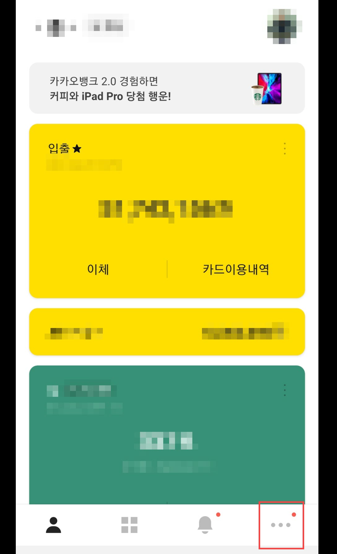 Step 1. 카카오뱅크 로그인 후 오른쪽 아래 <...> 부분을 선택한다.