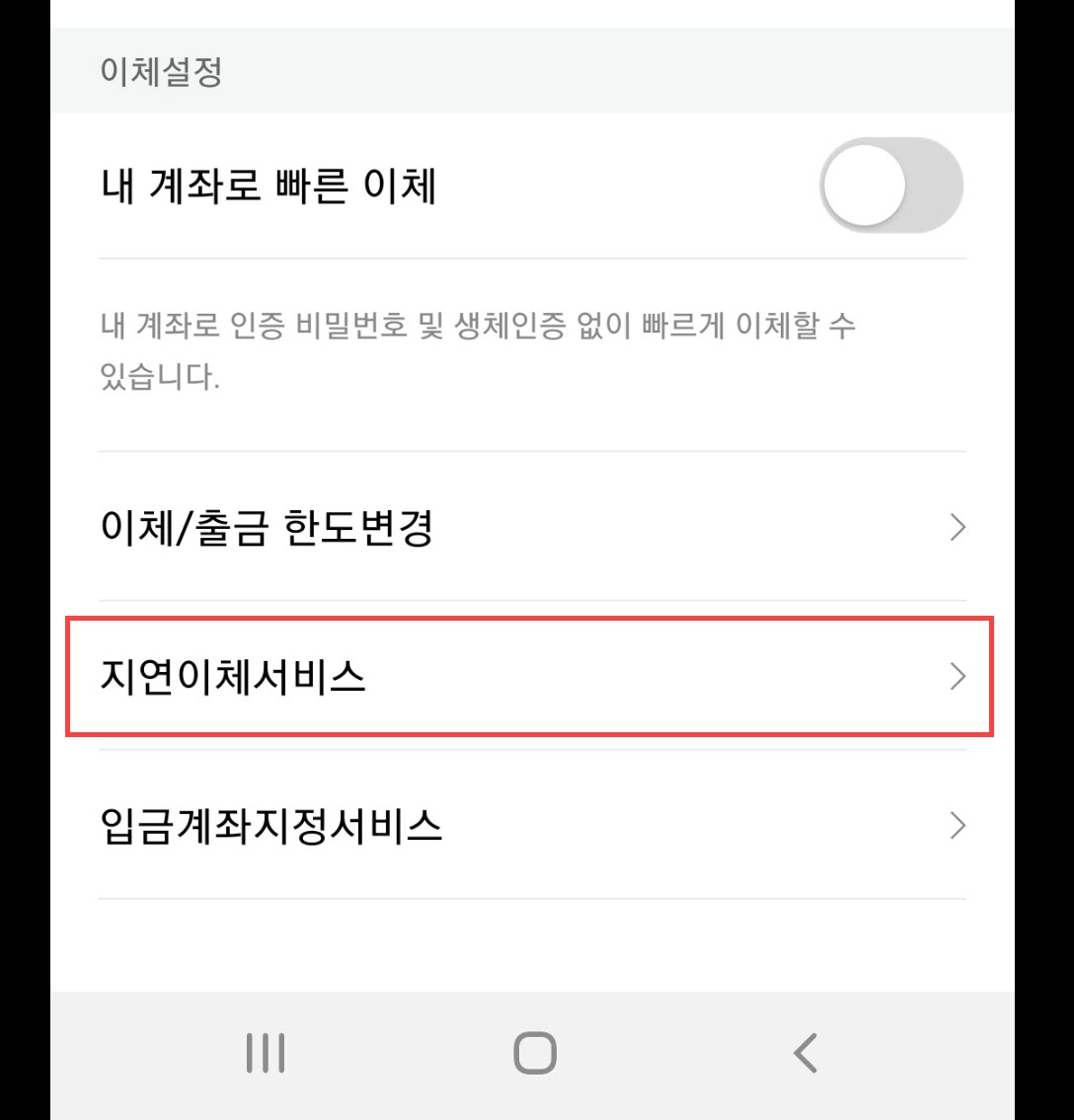 Step 3. 이체 설정 밑에 지연이체서비스를 선택한다.