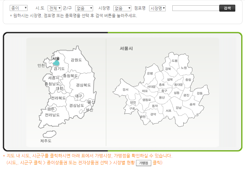● 전국 시장 통통 홈페이지에서 가맹점포 찾기에서 가능 바로가기