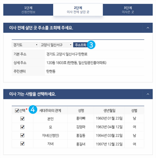 2단계. 전에 살 던 곳 및 이사 가는 사람 입력